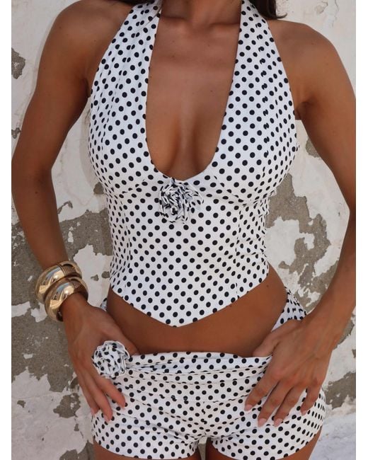 | Characteristics of goods | Product details: Meet our newest obsession, our Piai Corset Top in White Polka Dot. Pair her back with our matching Piai Shorts in White Polka Dot for the cutest co-ord you'll wear on repeat. Color: brown A sweet 3D rose appliqué detail at the bust adds that extra touch of charm. Cut from structured cotton, she features a halter-style neckline and a sculpted bodice with a side zip closure for a perfectly flattering fit. | ||